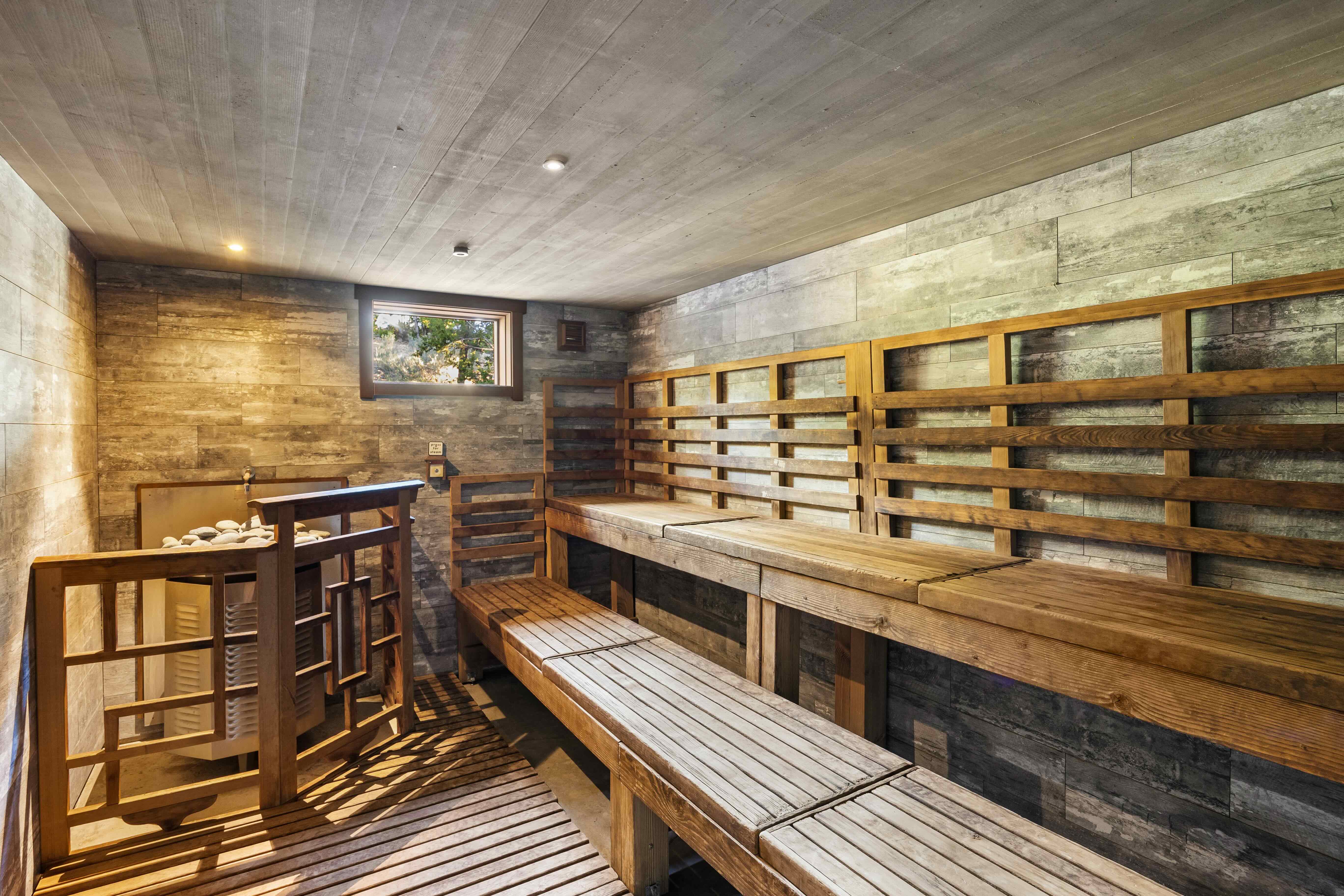- radiant gas heated monolithic sauna (165-175 degrees F.)